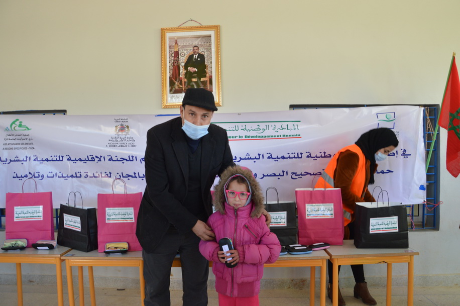 وتروم عملية توزيع النظارات الطبية بالمجان على التلاميذ المنحدرين من أسر معوزة والتي تم اقتناؤها ضمن برامج المبادرة الوطنية للتنمية البشرية، وبشراكة مع المندوبية الإقليمية للصحة، والمديرية الإقليمية للتربية الوطنية، وجمعية التضامن للأطفال ذوي الإحتياجات الخاصة بتازة، في إطار التدخل بشكل استباقي للكشف عن حالات ضعاف البصر والعمل على تمكينهم من النظارات الطبية بشكل مبكر، تلافيا لكل المضاعفات الصحية والتعليمية التي قد تنتج عن كل تأخير في معالجة الحالات المسجلة،باعتبار أن ضعف النظر يمكن أن يشكل أحد أسباب تراجع مستوى التحصيل الدراسي و ما قد يترتب عليه من تنامي معدل الهدر المدرسي.