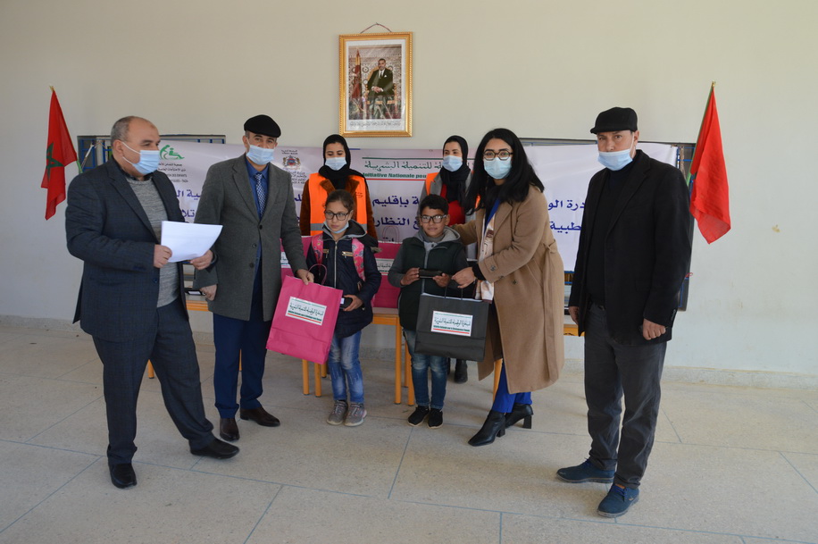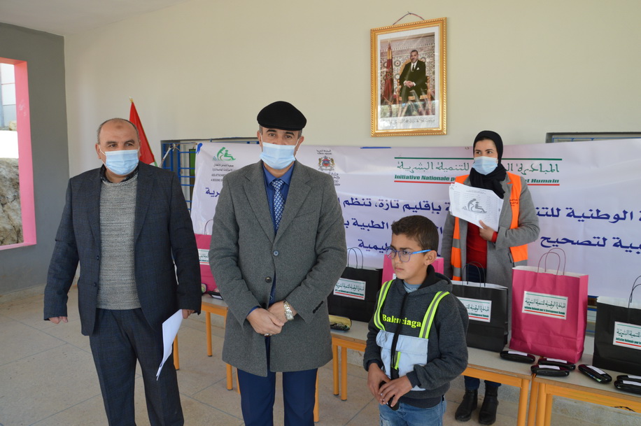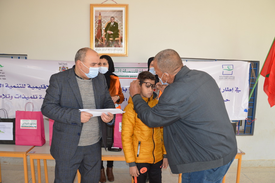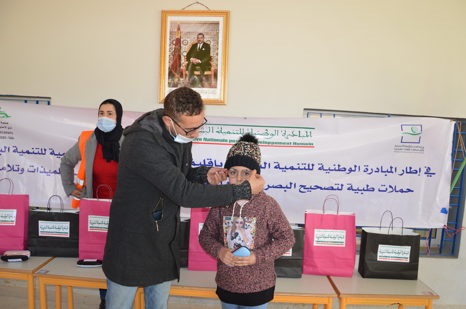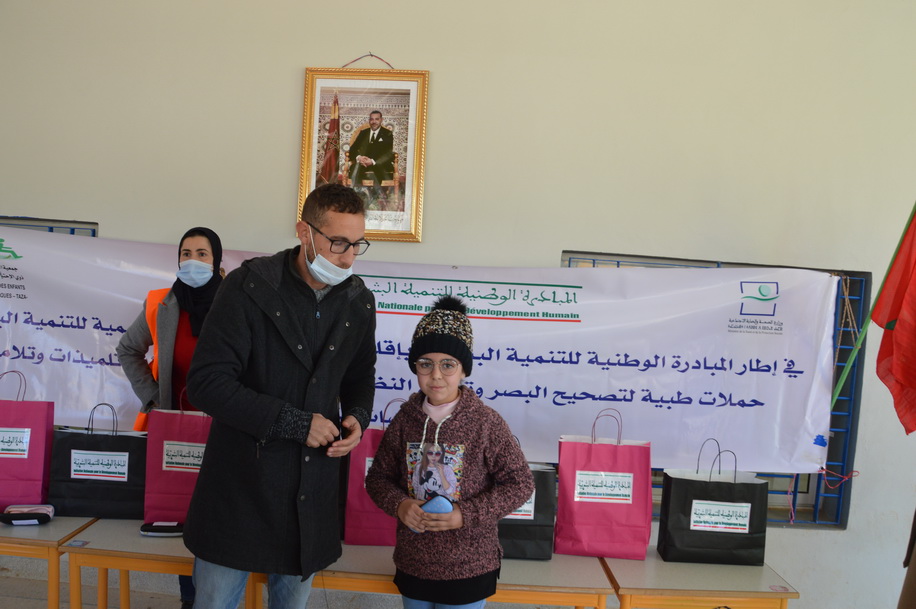 تنزيلا لمضامين البرنامج الرابع للمبادرة الوطنية للتنمية البشرية الخاص بالدفع بالأجيال الصاعدة، تحت إشراف السيد مصطفى المعزّة عامل إقليم تازة، وبتنسيق مع السلطات المحلية وبحضور مدير م/م الكعدة الحمراء، وأعوان السلطة، تم يوم الخميس 20 يناير 2022، ب م/م الكعدة الحمراء بغياثة الغربية، التابعة لنفوذ دائرة وادي أمليل، توزيع النظارات على تلاميذ المؤسسة التعليمية، م/م الكعدة الحمراء و م/م سيدي عبد الله، م/م سيدي بوبكر، و م/م لملاعب، و م/م بني مكارة عقب تشخيص حالتهم الصحية وقياس مستويات النظر لديهم.