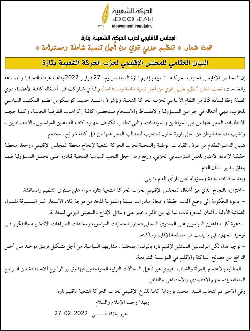جمال بلة جدد حزب التقدم والاشتراكية بمدينة تاهلة دماء هياكله المحلية خلال الجمع العام العادي المنعقد يوم السبت 18 أبريل 2026، هذا اللقاء الذي احتضنته قاعة مقهى بنعيسى، مر تحت إشراف الكاتب الإقليمي للحزب الرفيق رضوان زريول، وبمواكبة ميدانية من أعضاء المكتب الإقليمي الرفاق علي بوزردة، أحمد الصنهاحي، وفيصل اليعقوبي. وقد تميزت أشغال الجمع العام […]