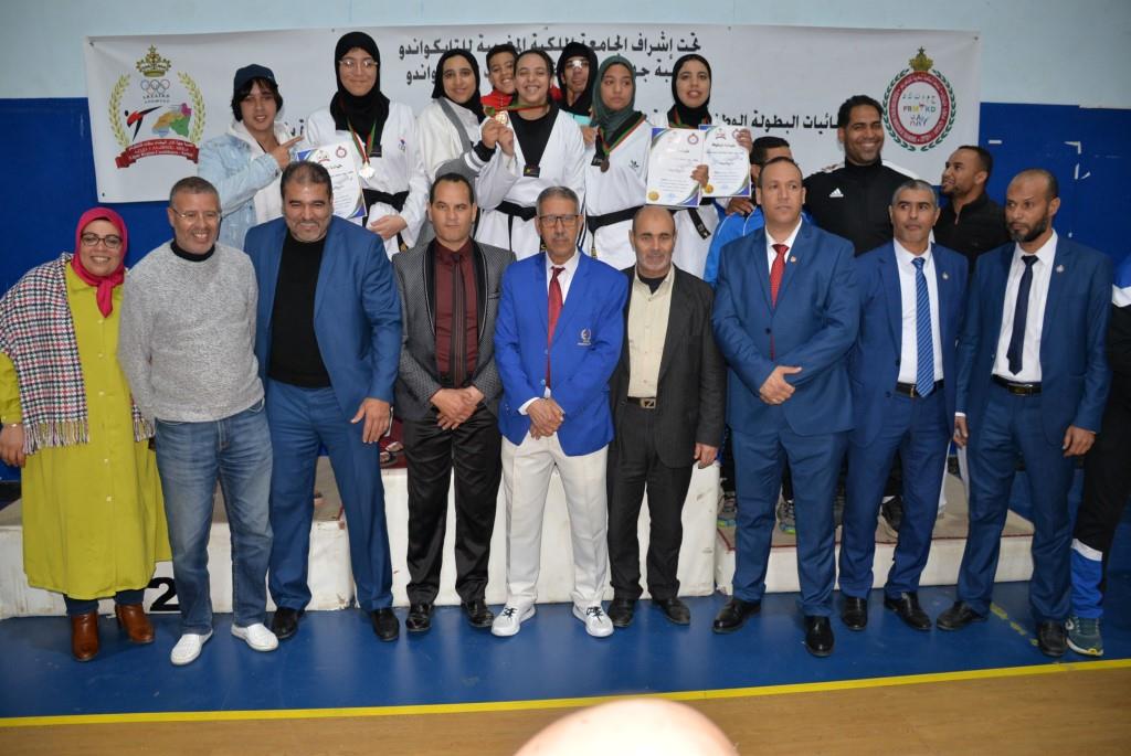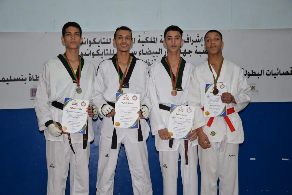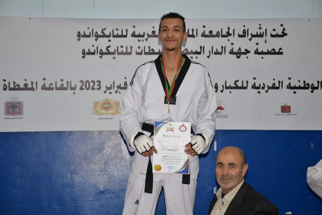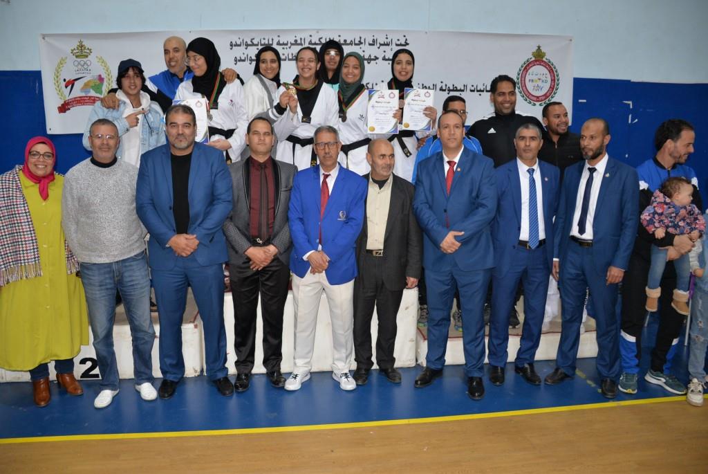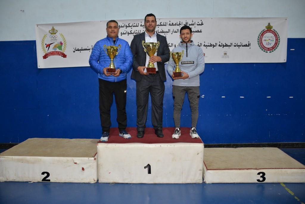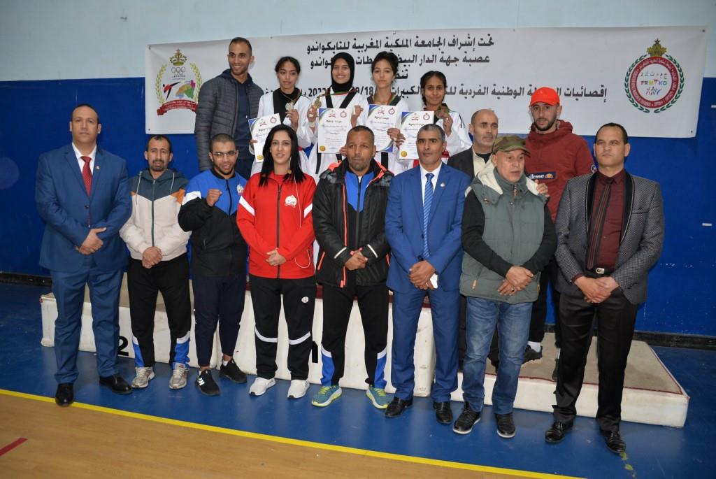 هؤلاء الأبطال إستطاعوا أن يفوزوا يومي 17-18 و19 فبراير 2023، بالقاعة المغطاة ببنسليمان، بالرتبة الأولى إناث فئة الكبيرات، والرتبة الثالثة ذكور فئة الكبار، وذلك برسم إقصائيات البطولة الوطنية الفردية كبار وكبيرات لسنة 2023، والتي أشرف على تنظيمها عصبة جهة الدار البيضاء سطات للتايكوندو، التابعة للجامعة الملكية المغربية للتايكوندو، بمشاركة حوالي 15 جمعية رياضية وأزيد من 140 مشارك ومشاركة بعصية جهة الدار البيضاء سطات، وبحضور كل من السيد رئيس عصبة جهة الدار البيضاء سطات للتايكوندو الاستاذ “الحبيب المهداوي”، والسيد “كمال شتوان” باشا مدينة بنسليمان، والسيد “مصطفى العمراوي” مدير الديوان، والسيد “إبراهيم ممدوح” والسيدة “أحلام المواق” ممثلي المجلس الجماعي لبنسليمان، وأعضاء المكتب المديري للعصبة، ورؤساء الجمعيات المشاركة، وعدة فعاليات رياضية محلية ووطنية، قاموا بتتويج مختلف البطلات والأبطال الفائزين بالميداليات والكؤوس.