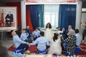 وقبل اختتام الحفل وفي إطار الأنشطة الترفيهية التي تهدف إلى تعزيز الرفاهية النفسية والاجتماعية لأطفال التوحد، وذوي الإعاقة الأطفال رفقة إنتقل أفراد من اسرهم ومنظمو الحفل لزيارة الورشات للوقوف على إنتاجات فلذات اكبادهم بمركز جمعية التضامن للأطفال ذي الاحتياجات الخاصة تازة. وقد كانت مناسبة لاطلاعهم على أقسام وخدمات المركز وكيفية اشتغاله، عن طريق شروحات تلقوها من السيد الرئيس عبد اللطيف النجار ومسيري المركز، تم من خلالها التعريف بالخدمات التي يقدمها المركز الاجتماعي للأشخاص ذوي الاحتياجات الخاصة، وقد جاءت هذه العملية لتوفير بيئة محفزة وممتعة للأطفال، وتعزيز التفاعل الاجتماعي بينهم، ليتم بعد ذلك توزيع الهدايا على الأطفال المستفيدين من خدمات جمعية التضامن لذوي الاحتياجات الخاصة تازة.