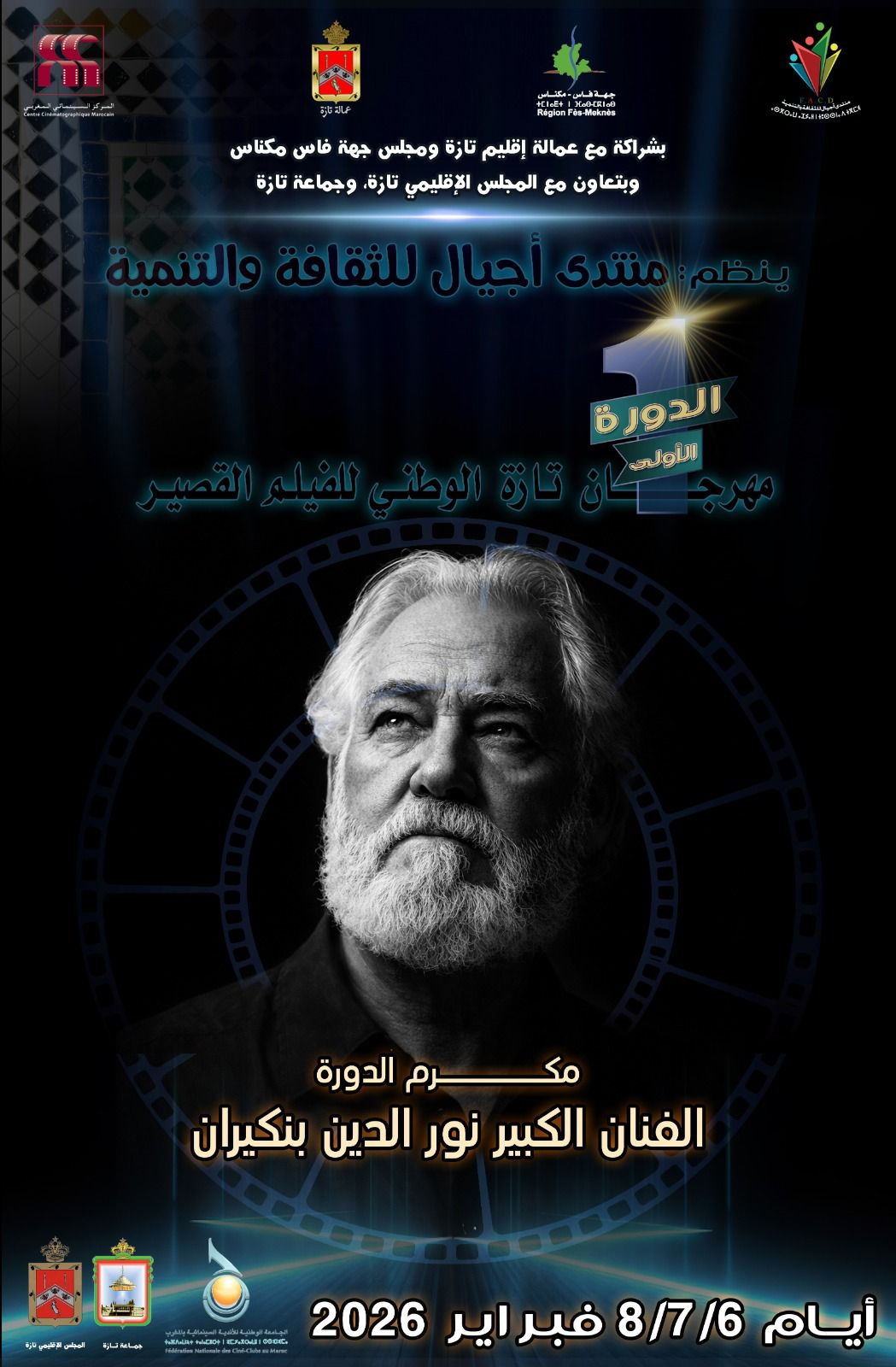 بفيض من المحبة والاعتراف، الدورة الأولى لمهرجان تازة الوطني للفيلم القصير، دورة نورالدين ن كيران تحت شعار “السينما والهوية المغربية”، تعد لحظة تكريم مستحق استثنائية تحمل في طياتها أسمى معاني التقدير لمسيرة فنية حافلة بالعطاء والإبداع، للفنان المسرحي والسينمائي الكبير نور الدين بنكيران، وهو شهادة تقدير لرسالة الفن النبيلة التي حملها الفنان نورالدين بنكيران طوال حياته، وهو أيضًا احتفاء بإرث سيظل مصدر إلهام للأجيال القادمة. ❤️