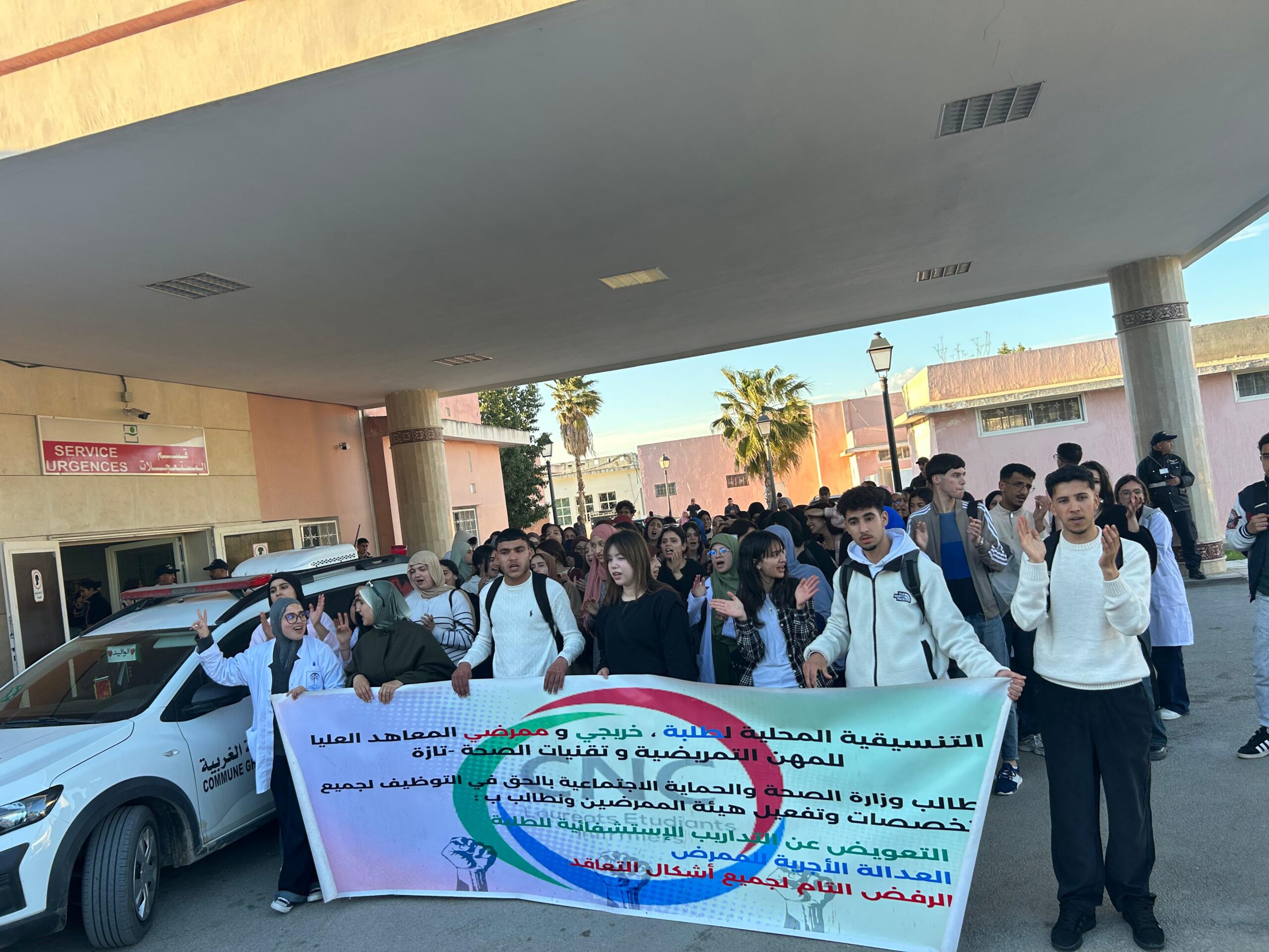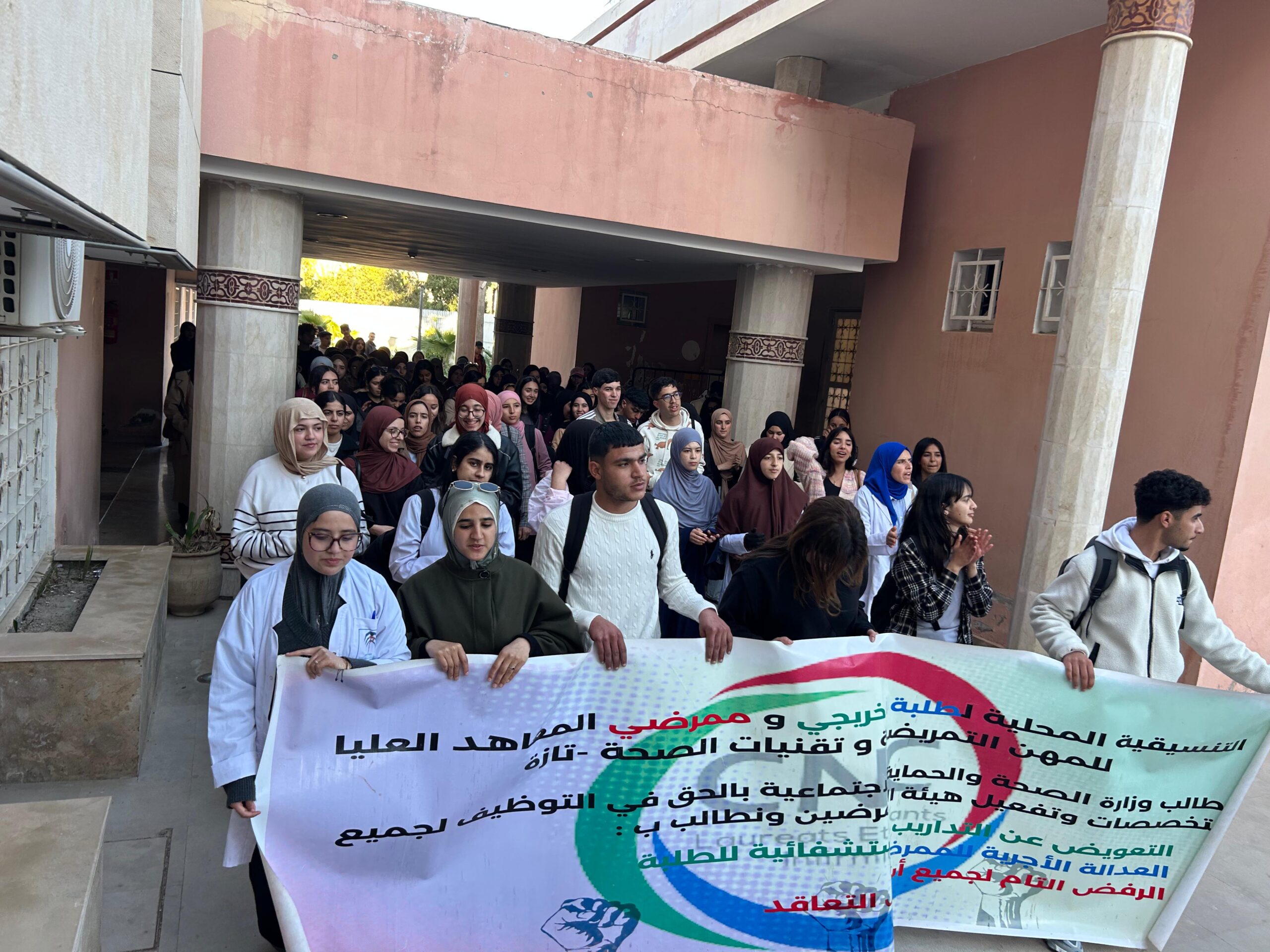 ويأتي هذا الشكل النضالي في ظل شعور متزايد لدى هذه الفئة بما تعتبره تهميشا لمطالبها الأساسية، رغم الدور الذي تضطلع به داخل المؤسسات الصحية، وخلال المسيرة، عبر المحتجون عن رفضهم لاستمرار حرمان الطلبة من التعويض عن التداريب الاستشفائية، مؤكدين أنهم يقومون بمهام تمريضية فعلية ويساهمون في تغطية الخصاص المسجل، خاصة في ظل الضغط الذي تعرفه المنظومة الصحية، دون أن يقابل ذلك أي تعويض مادي.