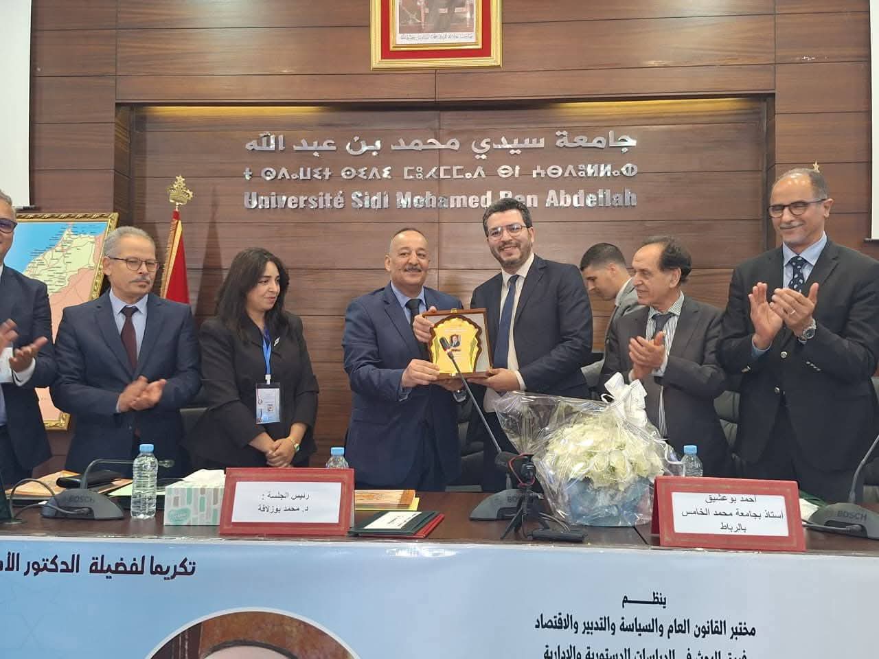 واكتست هذه الندوة أهمية خاصة لكونها موسومة بثقافة الاعتراف، حيث تم خلالها تكريم فضيلة الدكتور محمد الأعرج، تقديرا لإسهاماته العلمية والأكاديمية في تطوير الفكر القانوني والإداري، وما راكمه من أعمال بحثية ساهمت في إغناء هذا الحقل المعرفي.
